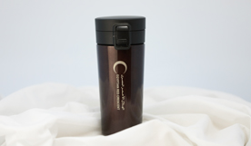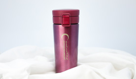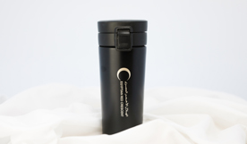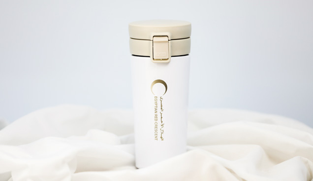 Thermal mug for hot/cold drinks made of stainless steel bearing the Egyptian Red Crescent logo (black-silver-brown-fuchsia-beige)